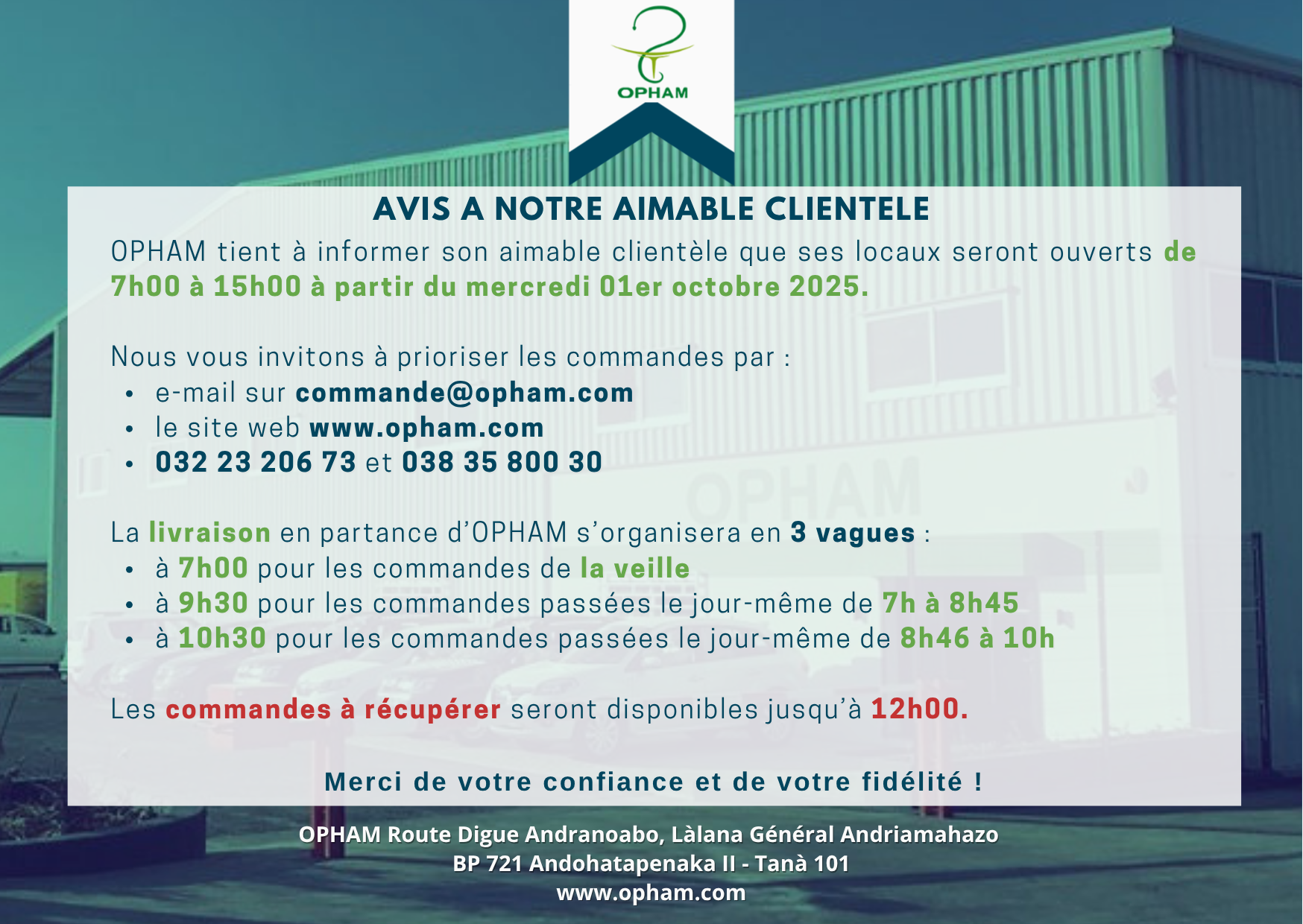 OUVERTURE OPHAM A PARTIR DU MERCREDI 1ER AU 03 OCTOBRE 2025