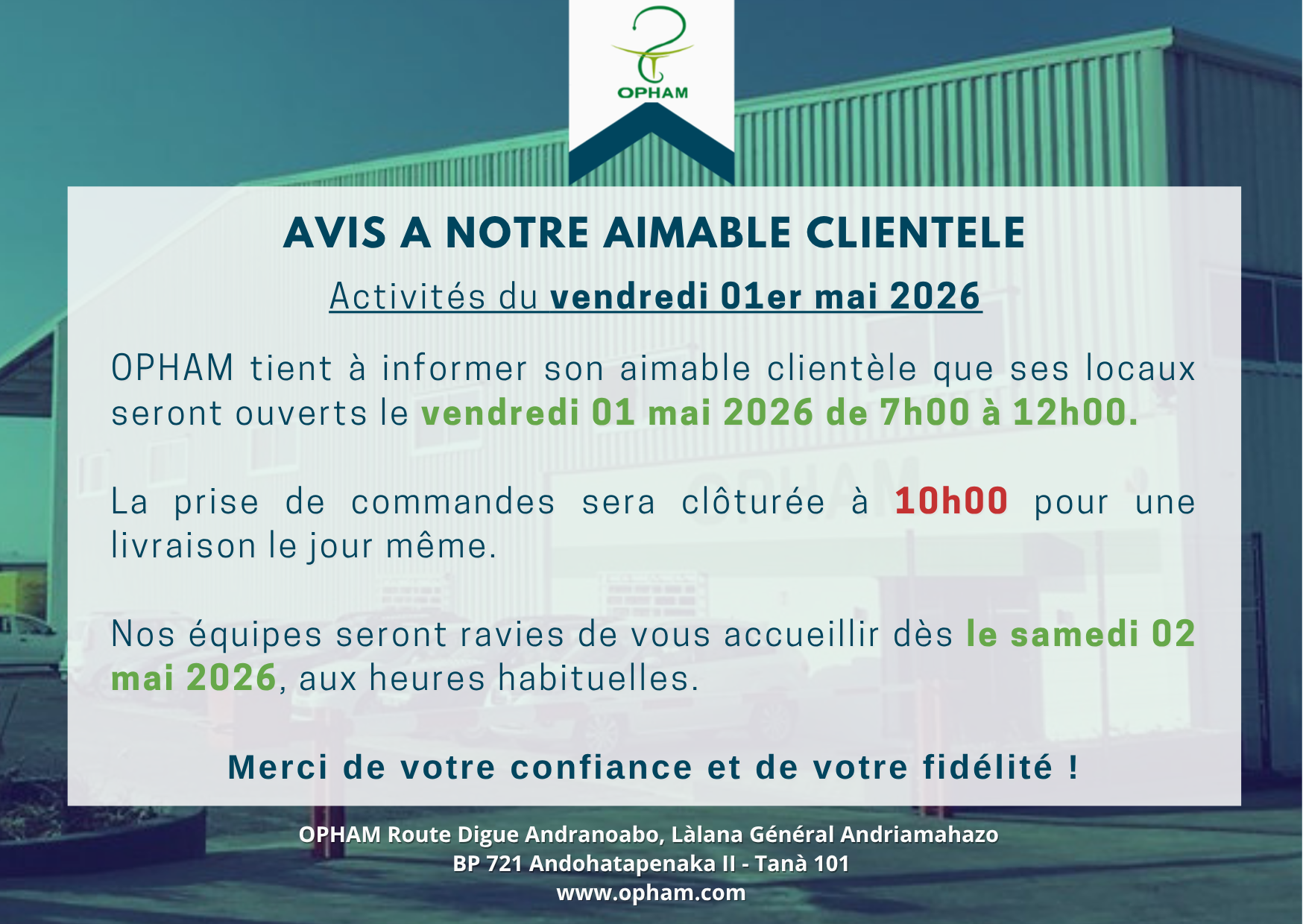 AVIS CLIENTELE OUVERTURE VENDREDI 01ER MAI 2026