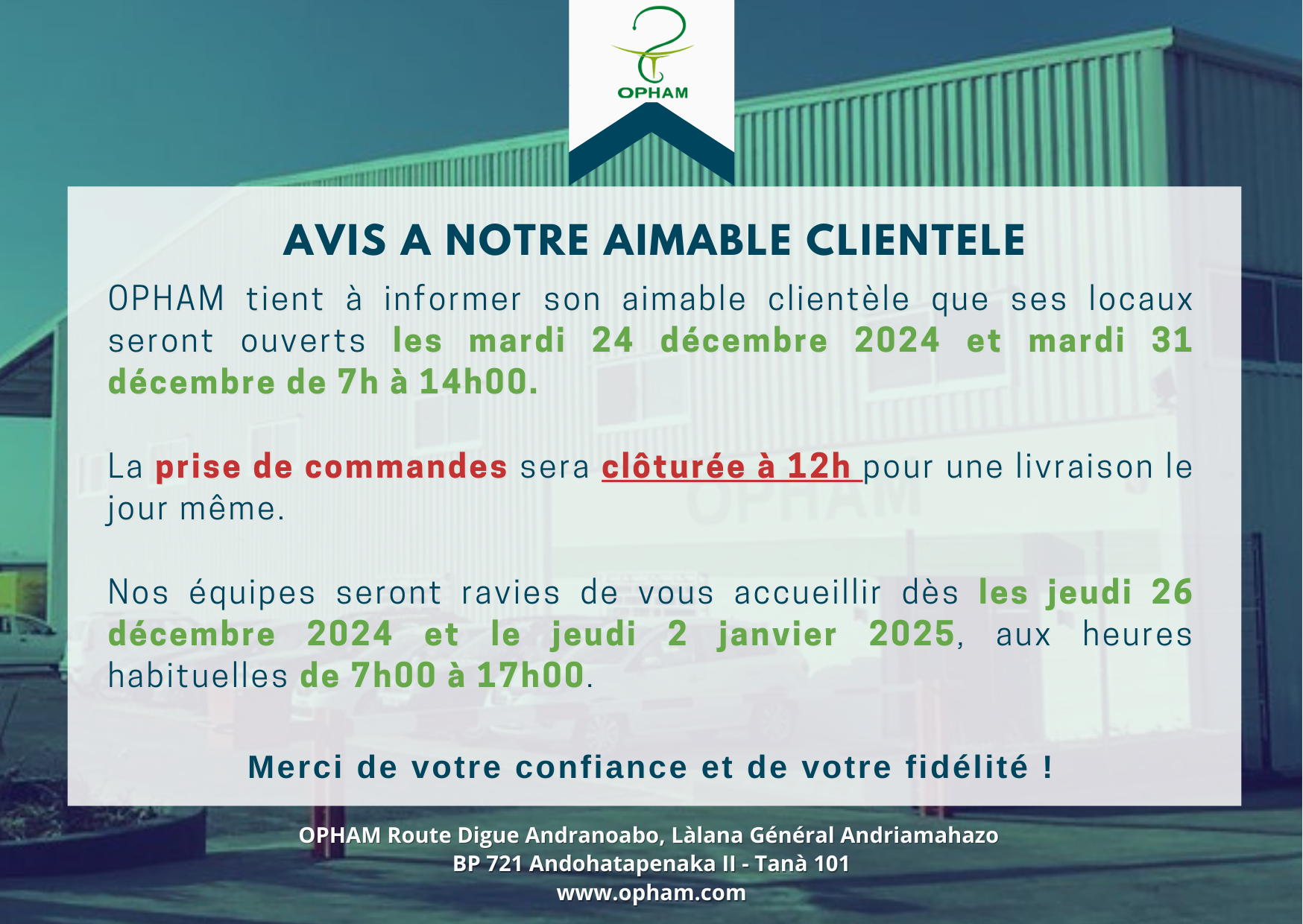 OUVERTURE OPHAM 24 ET 31 DECEMBRE 2024