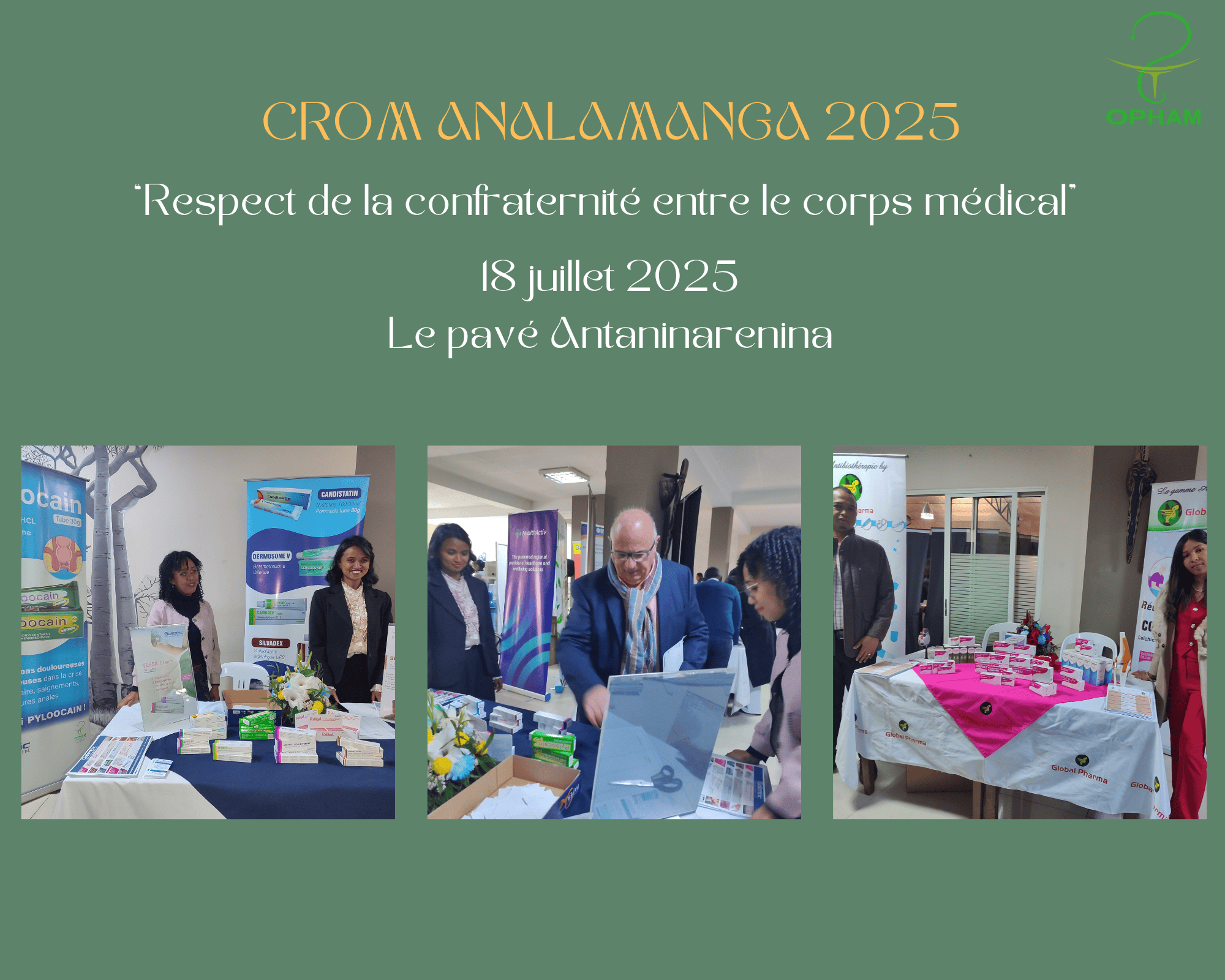 OPHAM - Office Pharmaceutique Malgache à la Journée des Médecins d’Analamanga, organisée par le Conseil Régional de l’Ordre des Médecins d’Analamanga (CROM Analamanga), qui s’est tenue le vendredi 18 juillet à l’Hôtel Le Pavé Antaninarenina sur le thème du « Respect de la confraternité entre le corps médical ».