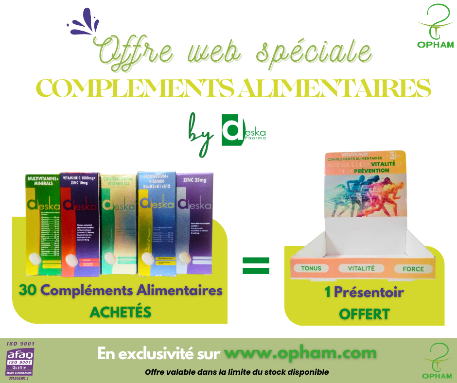 Profitez de nos offres exclusives sur www.opham.com avec 30 compléments alimentaires Deska achetés = 1 présentoir personnalisé offert