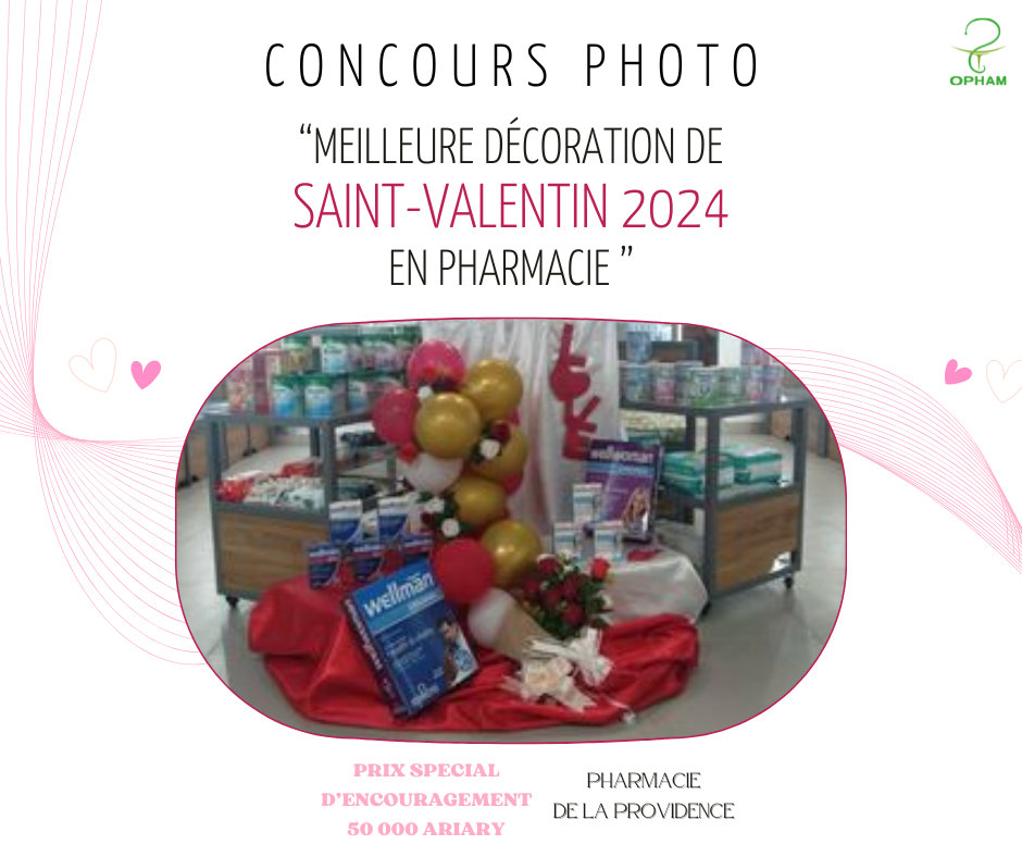OPHAM - Office Pharmaceutique Malgache tient à remercier sincèrement les pharmacies qui ont participé à ce concours photo de la « Meilleure décoration Saint-Valentin 2024 en pharmacie ».