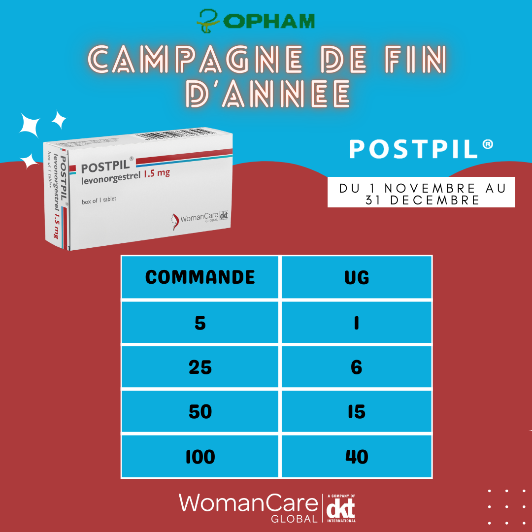 Commandez dès maintenant POSTPIL Levonorgestrel 1.5mg au 032 23 206 73 et au 038 35 800 30 ou sur www.opham.com ou par mail à commande@opham.com et recevez vos unités gratuites.